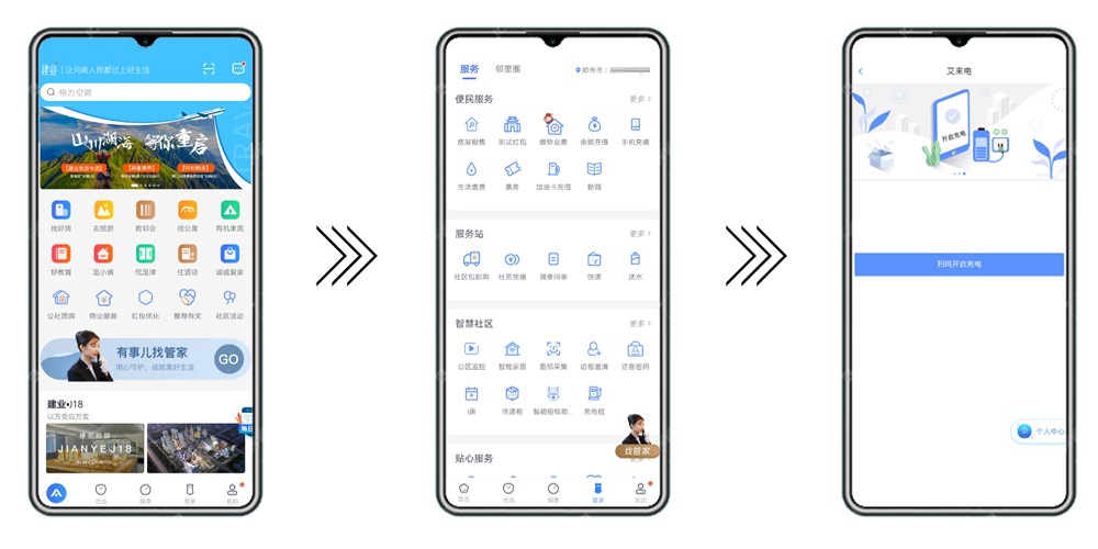 |打开“建业+”APP,扫码充电|