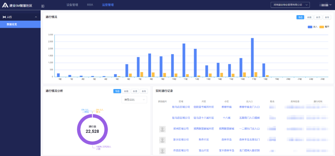 目前,建业5M智慧社区运维管理平台,主要涵盖门禁管理、停车管理、智能巡更、电子围栏、视频监控、云梯、供配电、给排水、消防等(设备管理、社区安防、RBA、系统管理),围绕居民24小时生活需求,对社区各种智能化系统进行无缝管理对接,打造“优质生活零距离”服务。同时,紧扣“社区安全”,使各系统互联互通实现自主运行,便捷管理,为业主提供智慧通行、可视对讲、视频监控、停车管理、健康养护、家庭安防等服务。