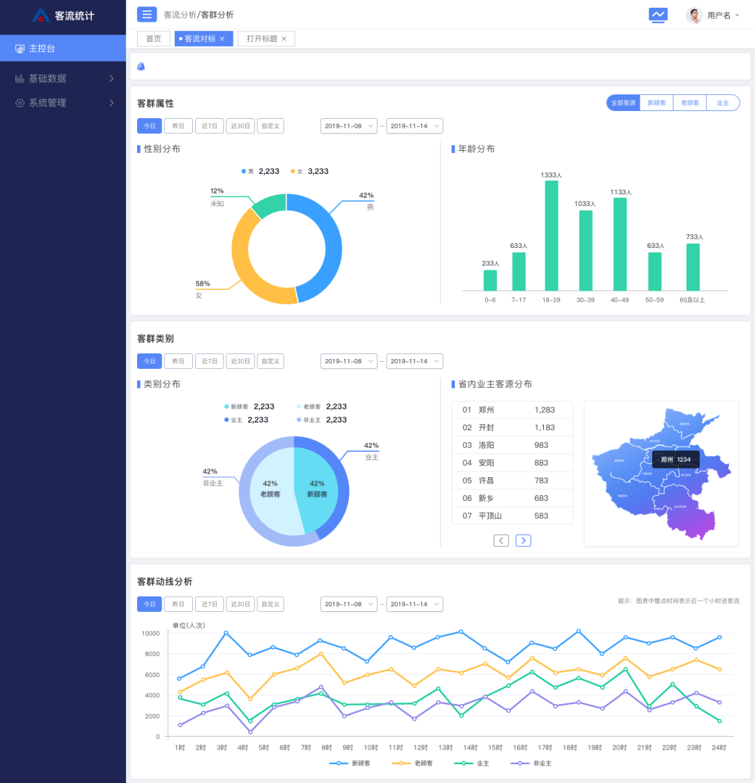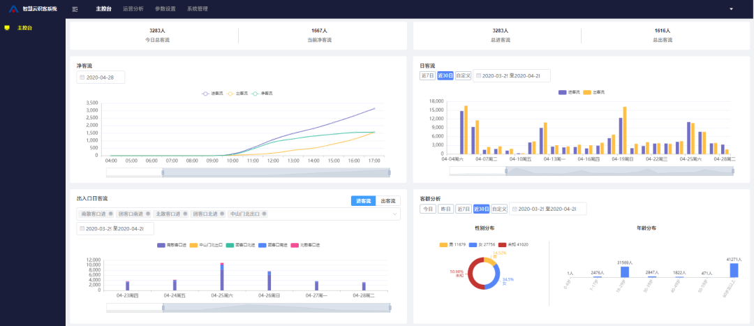 数据本身是不直接产生价值的,要结合管理系统的分析、解读,以及合理的运用才能真正发挥作用。智慧云识客平台拥有成熟而完备的后台管理系统+维度多样的表单呈现,系统具有自动分析能力,能将客流数据做出合理有效的统计划分,并生成可视化图表,满足多样化的商业需求。同时,它还是一个多级分化的管理平台,可应用于集团企业,用“上层统一,项目分级”的管理方式,洞悉多业态数据。它还能支持同一个项目不同门店商家,分级查看单个商家或区域的客流数据、客群分析等,通过获取精准的客群分析数据,实现客户的精细化管理和科学的运营决策。